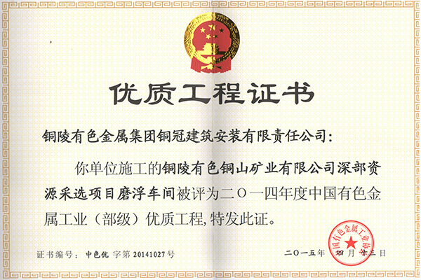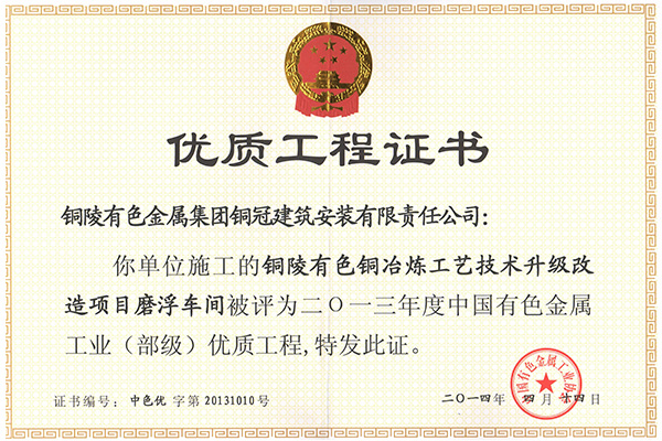 • 銅山磨浮—安裝優質工程獎