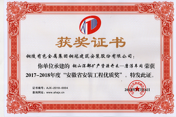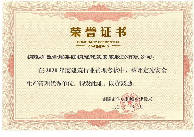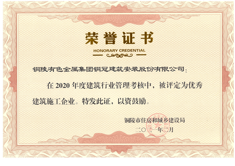 • 銅陵市2020年度優秀建筑施工企業