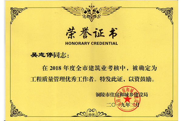 • 吳志停工程質量優秀工作管理者