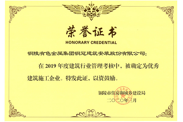 • 2019優秀建筑施工企業
